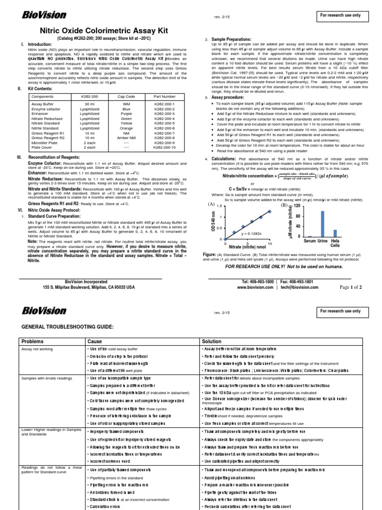 Biovision Nitric Oxide Colorimetric Assay Kit PDF Nitrate Nitric